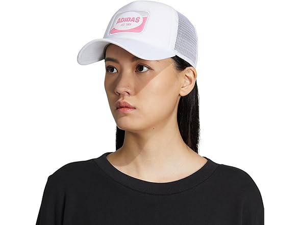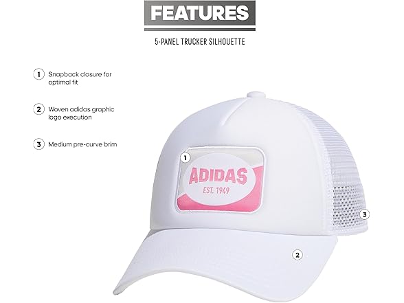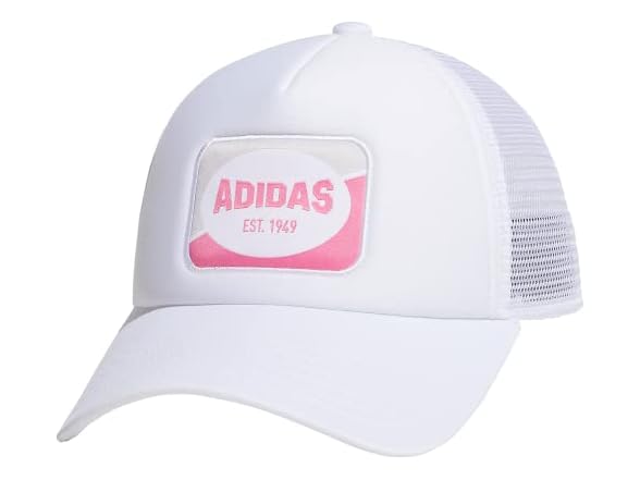 adidas Women's Foam Front Snapback Adjustable Fit Trucker Hat, White/Pink Fusion/Clear Grey, One Size