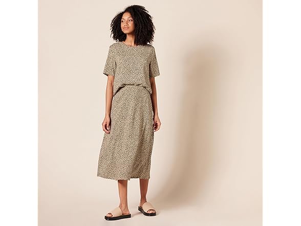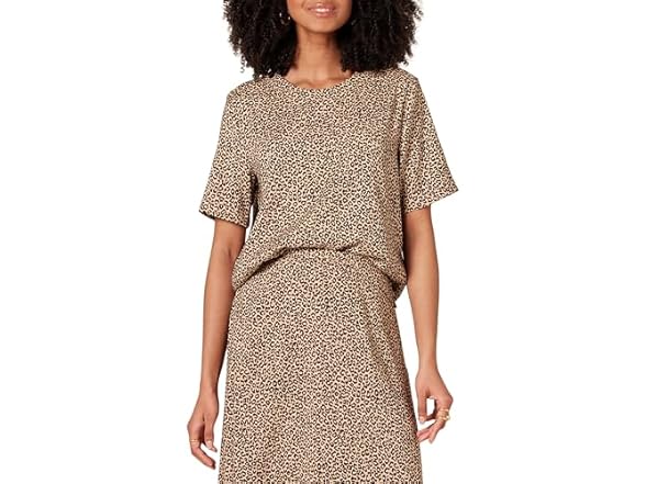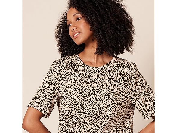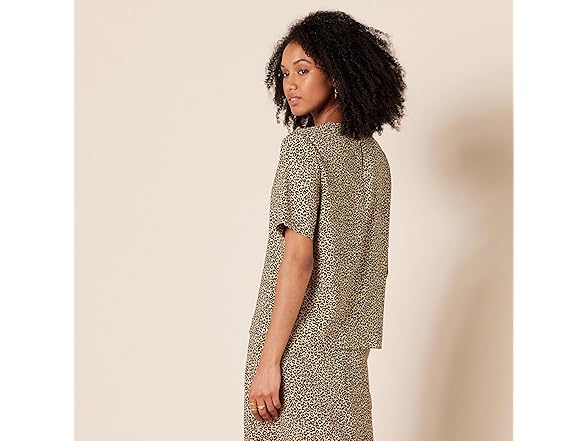 Amazon Essentials Womens RegularFit Georgette ShortSleeve Top Taupe Leopard (S)