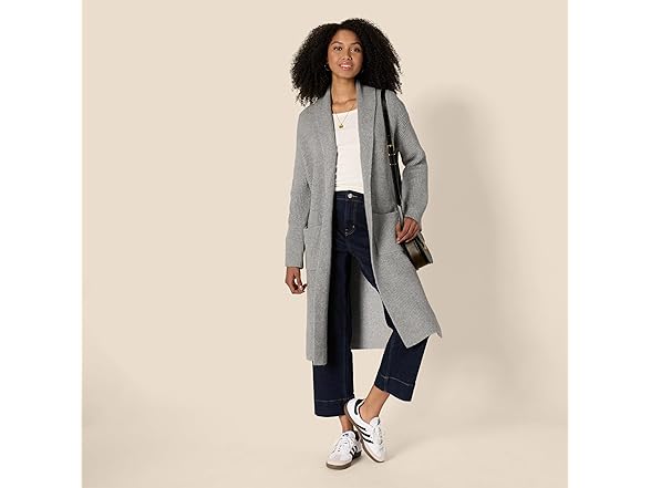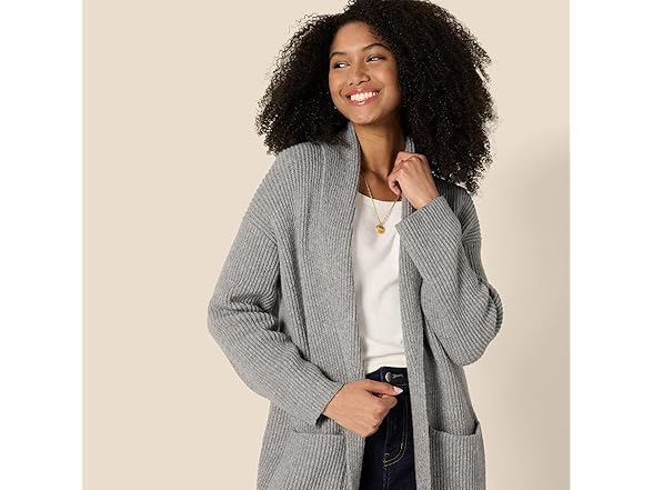 Amazon Essentials Women's Oversized-Fit Cotton Blend Heavyweight Texture Stitch Long Cardigan Sweater, XX-Small