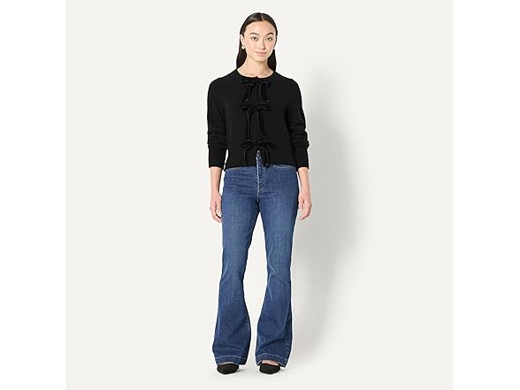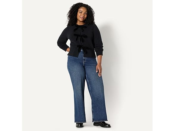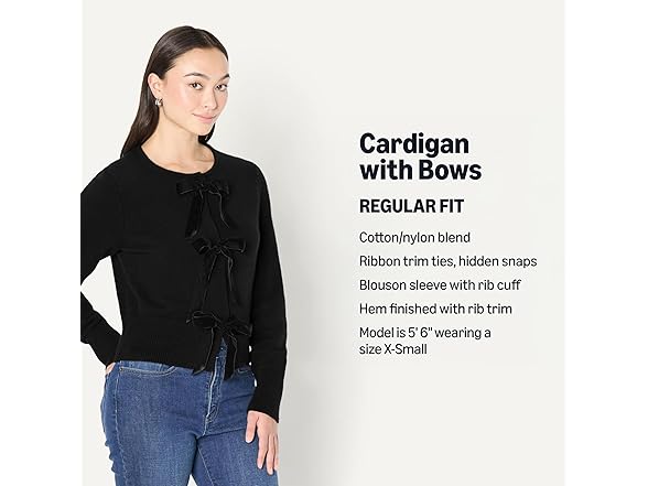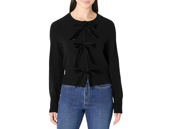 Amazon Essentials (Demi's Pick) Women's Regular-Fit Long-Sleeve Tie Front Cardigan with Bows, Black, Medium