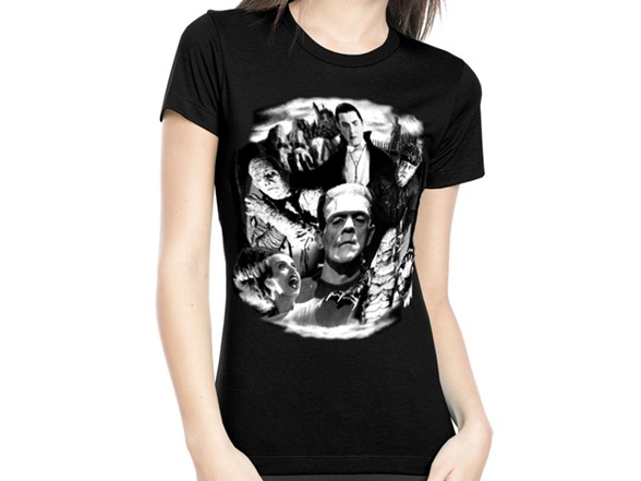 - (1) Classic Universal Monster T-Shirts for Women - Monster Collage