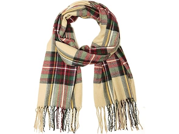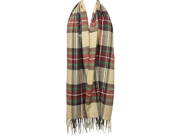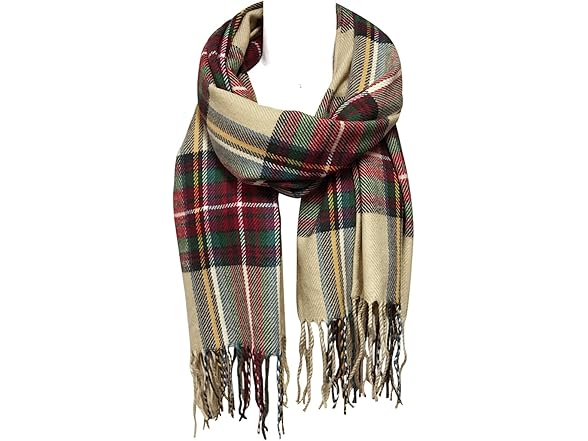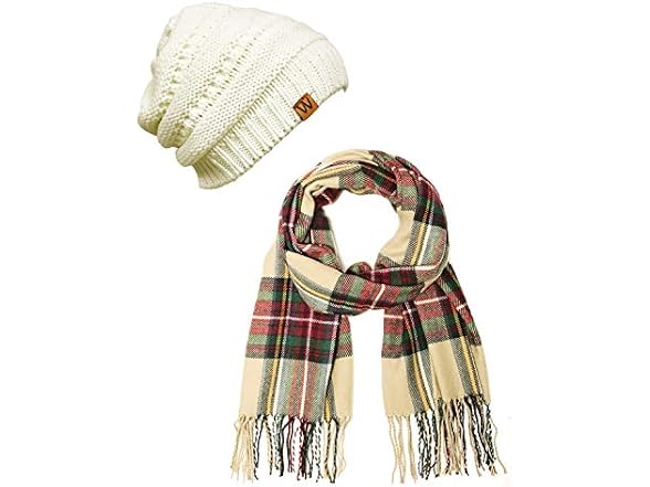 Wrapables Plaid Print Long Winter Warm Scarf and Beanie Hat Set, Red/Green + Cream Beanie
