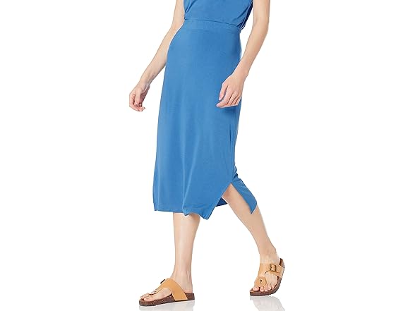 Amazon Essentials Women's Pull-On Knit Midi Skirt (Available in Plus Size), Blue, Medium