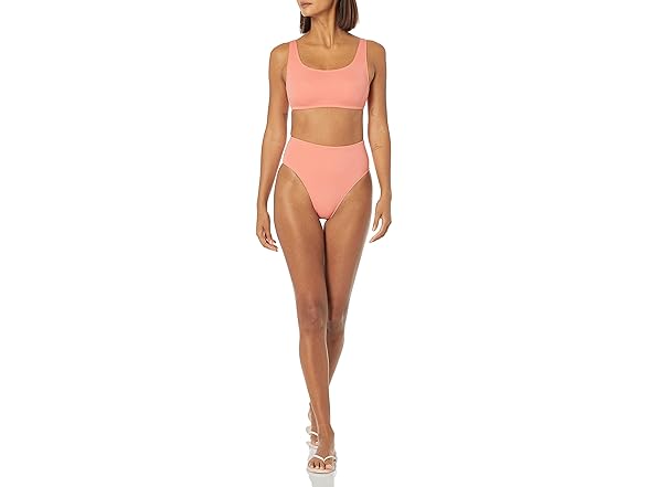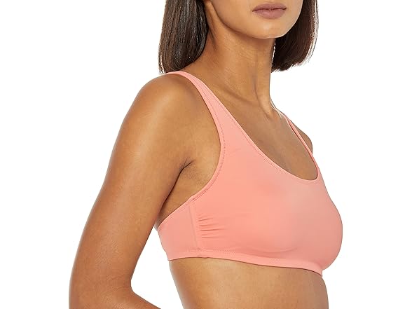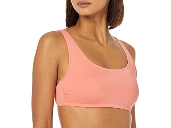 Amazon Essentials Women's Scoop Neck Swim Crop Top, Coral Pink, Medium