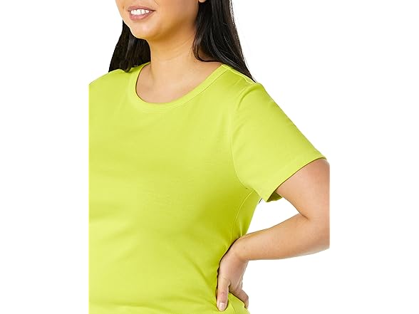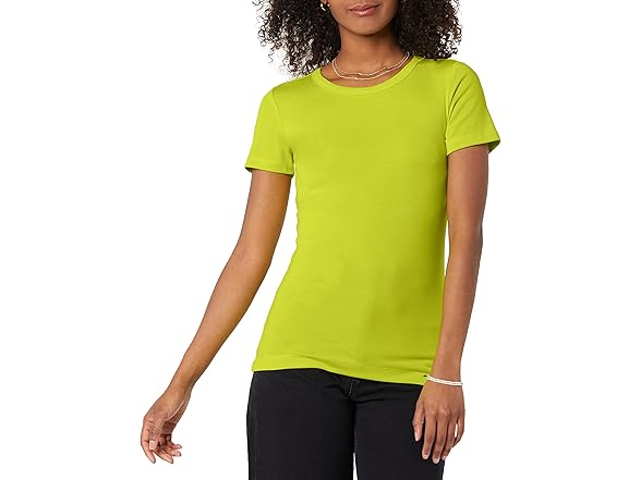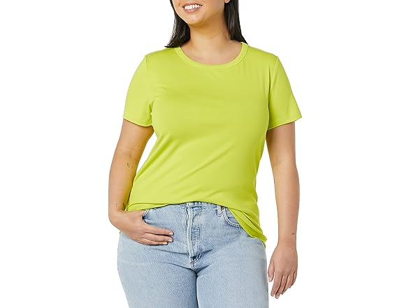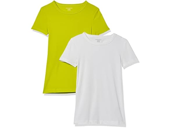Amazon Essentials Women's Slim-Fit Short-Sleeve Crewneck T-Shirt, Pack of 2, White/Lime Green, Medium