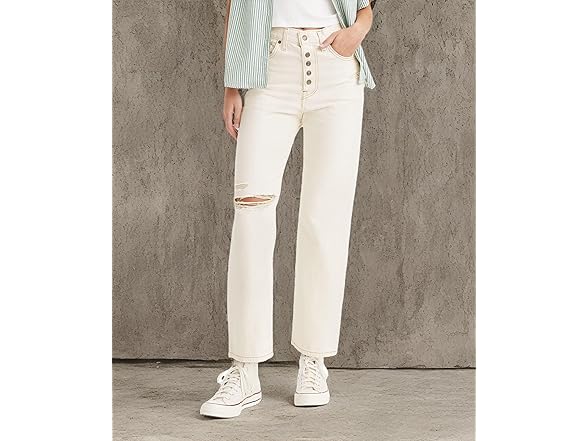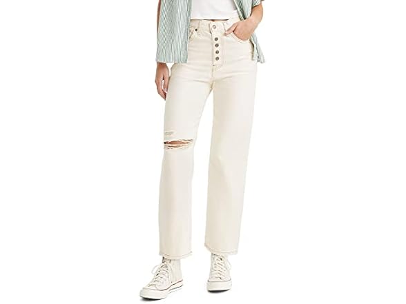 Levi's Women's Snap Ribcage Straight Ankle Jeans, (New) White Destructed, 30