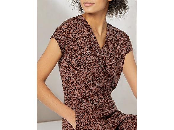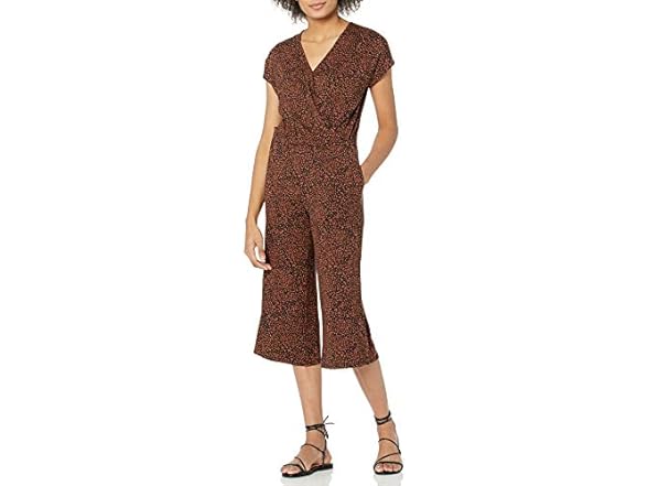 Amazon Essentials Womens ShortSleeve Surplice Cropped WideLeg Jumpsuit Brown Animal Print (S)