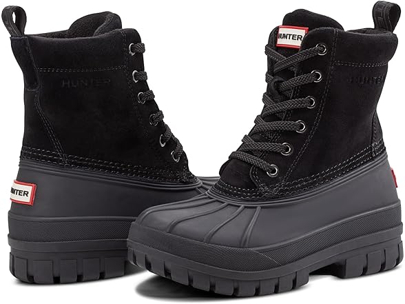 Hunter Women's Sussex Waterproof Rain Boot, Black Suede, 5