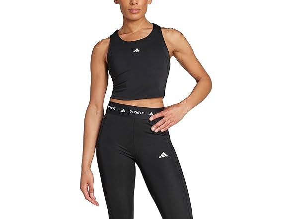 adidas Women's Techfit Cropped Training Tank Top, Black, Large