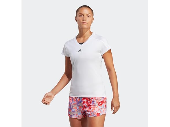 adidas Womens Training Essentials Minimal Branding V-Neck T-Shirt White X-Small