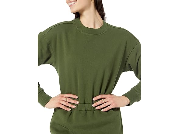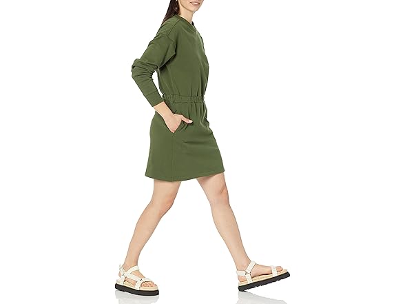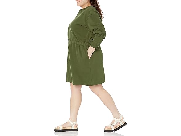 Amazon Essentials Women's Waisted Sweatshirt Dress (Available in Plus Size), Dark Olive, X-Small