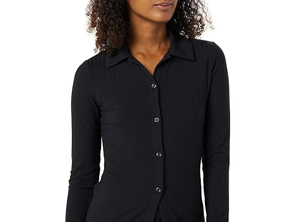 Amazon Essentials Womens Wide Rib LongSleeve ButtonUp Collared Cardigan Black (XS)