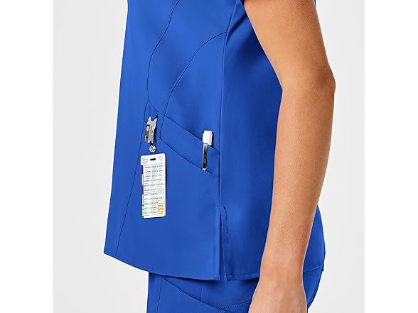 - Smart 5-Pocket Design: A right shoulder badge loop, two top-loading pockets, two utility pockets and a logo D-ring enable this scrub shirt to handle all your storage needs