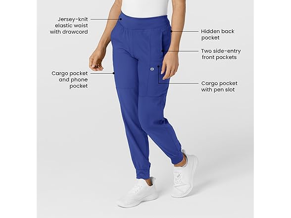 The WonderWink W123 Comfort Waist Cargo Jogger Pant 5555 is the perfect scrub pant for all your work needs. These cargo scrubs feature 8 pockets, including three accessory pockets for your scissors, cell phone, bandages and other medical work needs. As part of our W123 Scrubs collection, these pants offer distinctive silhouettes tailored for all shapes and sizes, leading edge microfiber technology fabric, and functional utility using spacious pockets and multiple accessory loops to create superb organization. Versatile, comfortable and functional, you can wear these scrubs for all occasions, from work to casual wear. We have a variety of colors and sizes available to suit any style and need, including petite to plus size tops and scrubs. With WonderWink, we encourage you to be bold and be original. We’re committed to making your shift more rewarding by creating high-quality medical uniforms, from long sleeve tops, laboratory coats and bottoms to maternity scrubs, dental uniforms and unisex surgical clothing. WonderWink captures the fresh, fun, and exciting essence of scrubs through proper fit, fabrication, and designs to bring you the ultimate experience — medical scrubs that help you stay motivated and feeling good all day long!