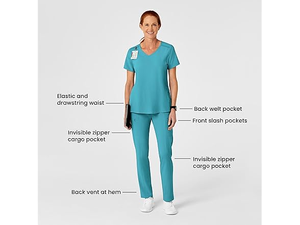 WonderWink Renew Women's High Waist Slim Cargo Scrub Pant, Teal Blue, 2X