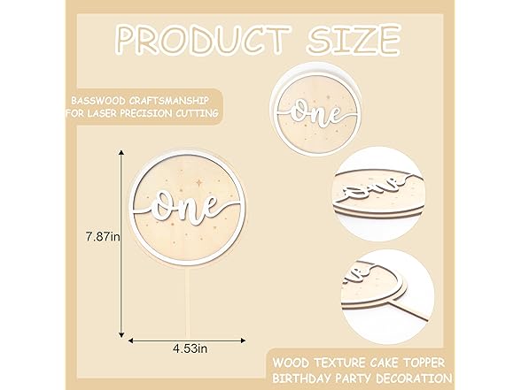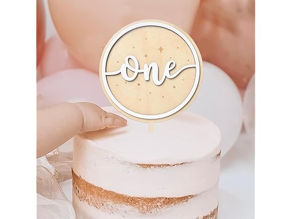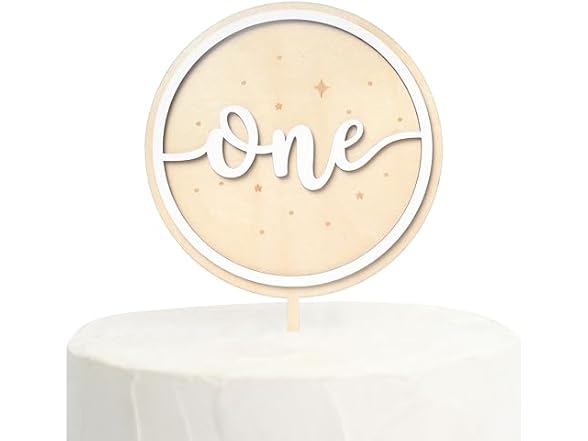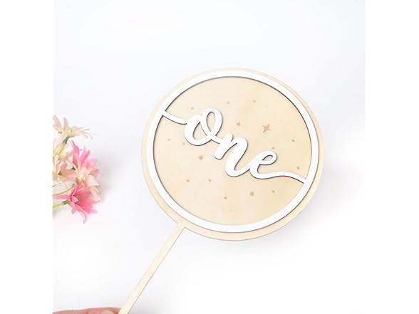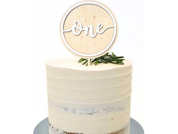 Wooden First Birthday Cake Topper,Wooden Cake Topper For 1st Birthday,One Year Old Boy/Girl Cake Topper,Handmade 1st Birthday Cake Topper,White,Round,Star,"ONE" Cake Topper