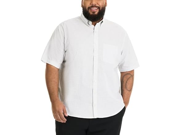 Van Heusen Men's Size Big Wrinkle Free Short Sleeve Button Down Shirt, No-Tuck Length, Comfortable Stretch Fabric, Bright White, Large Tall