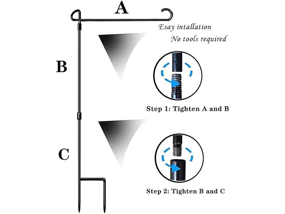 - EASY ASSEMBLY - Just screw together the 3 black wrought iron pieces with the included tool, and you have a sturdy flag pole in a couple of minutes.