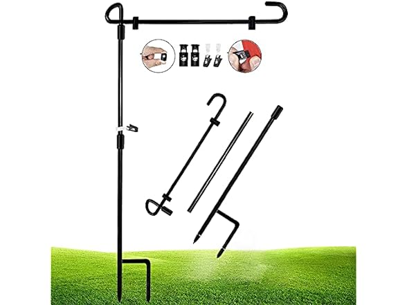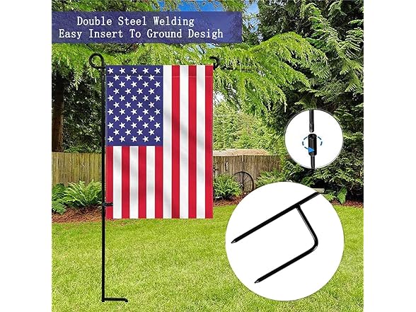 - KEEPS FLAG IN PLACE - This stand keeps your flag from twisting in the wind! Our garden flag stand comes with 2 anti-wind spring stoppers and an anti-wind clip to keep your favorite flag in place! Let your flag float and wave in the wind and rain, not become a twisted mess!