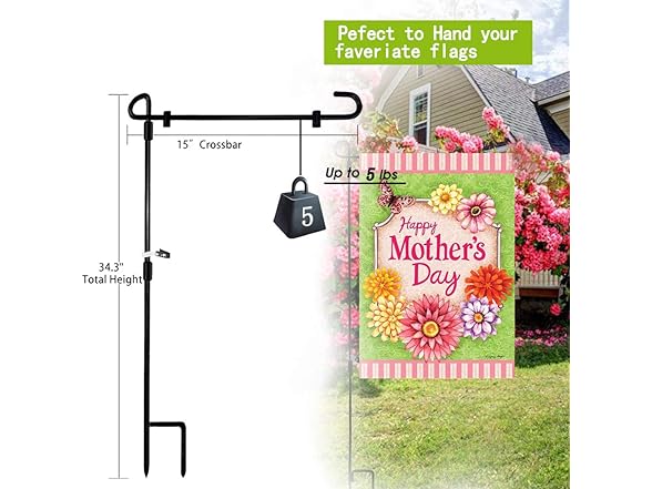 - ATTRACTIVE DESIGN - Our garden flag stand measures 36.5" tall x 16.5" wide. It’s a perfect size to hold up any flag up to 15”. Made with a high-quality wrought-iron with the traditional black matte finish, this sturdy flag stand looks great and is weather resistant.