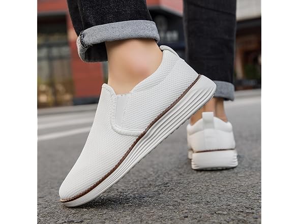 XKOWUO Mens Loafers Slip on Boat Shoes Non Slip Walking Sports Fashion Driving Casual Office Shoes Gym Lightweight Comfortable Sneakers White 9.5