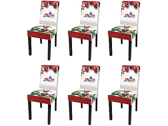 XMNTG Set of 6 Merry Christmas Christmas Chair Slipcovers Presents Printed Chair Covers Christmas Decor Removable Chair Covers Non Slip Washable Furniture Protector for Dining Room Kitchen
