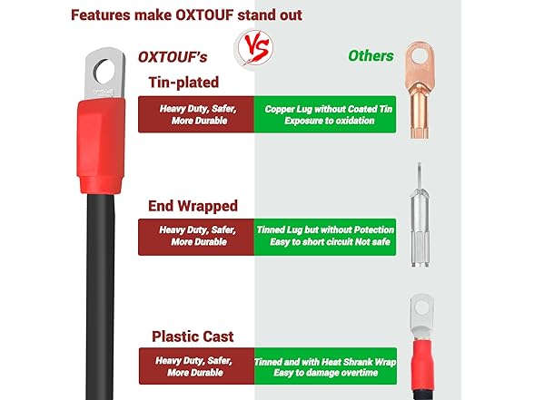 XTOUF DS Golf Cart Battery Cable Set for Club Car 36V/48V Golf Buggies, 4 AMG Heavy Duty Flexible Battery Cables with Cast Plastic Wrapped Lugs, Durable and Easy to Bend, 7 Pcs