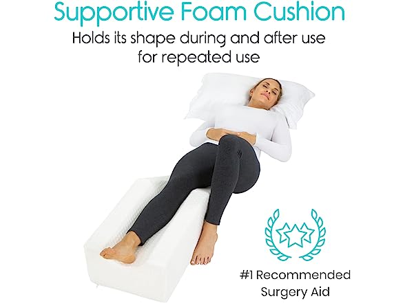 - RESILIENT FOAM CUSHIONING: Constructed with high-density foam, the single-leg elevation cushion is soft and supportive. The resilient foam knee elevation pillow retains its shape for extensive use following leg, knee or hip surgery and during injury recovery providing optimal support and comfort.
