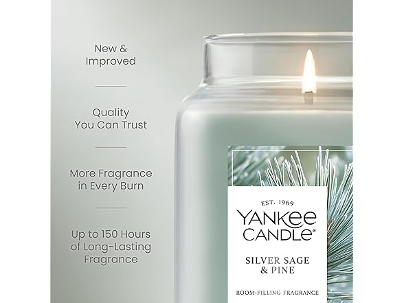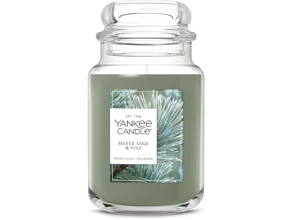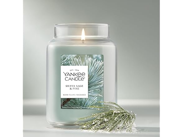 Yankee Candle Silver Sage & Pine, Christmas Scented Candle, 22oz Large Jar with up to 150 Hour Burn Time, Giftable