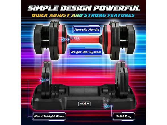 Yes4All Core Selectorized Dumbbell/Adjustable Dumbbell Set, Home Workout Equipment for Full Body Workout, Strength Training and Muscle Building - Reddy