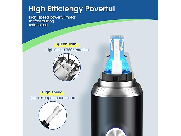 - Powerful, Painless, and Non-Irritating Cutting: This nose hair trimmer features an upgraded dual-edge spinning blade system with a protective cover and a 360° rotating design. Powered by a high-speed 13,000 RPM motor, the blades effortlessly and precisely trim hair without any painful tugging or discomfort. It’s easy to use, ensuring a smooth, comfortable grooming experience every time—helping you look your best at work or during appointments.