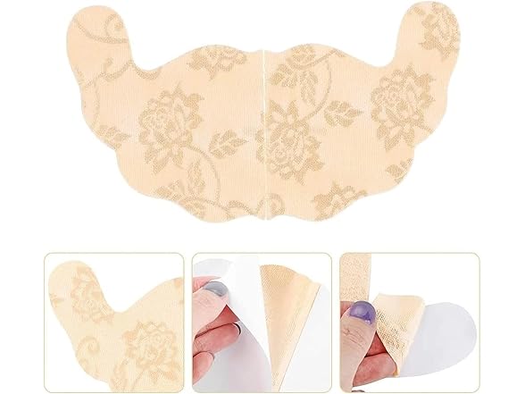 Yio Toik 3 Pairs Nipple Covers With Lift No Show Breast Lift Tape Push Up Satin Lace Boob Pasties Strapless Adhesive Bra (D Cup) Beige