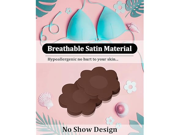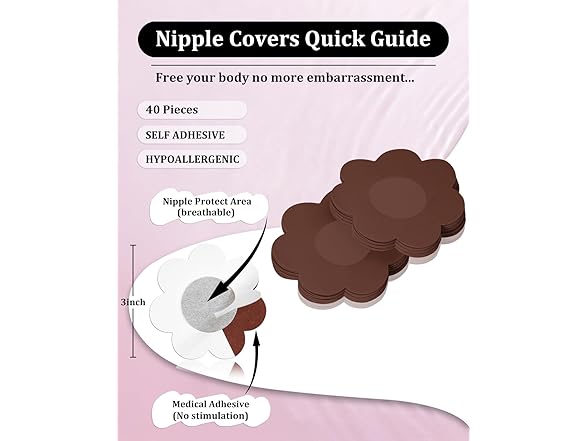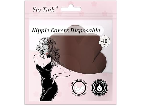 Yio Toik 40 Pcs Nipple Covers For Women No Show Disposable Nipple pasties Hypoallergenic Breast Petals Satin Nipple Stickers Brown