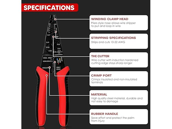 YIYITOOLS Wire Stripper Cutter Wire Stripping Tool - 8 Inch, Multi-Function Hand Tool,Professional Handle Design And Refined Craftsmanship.,XT-1-001