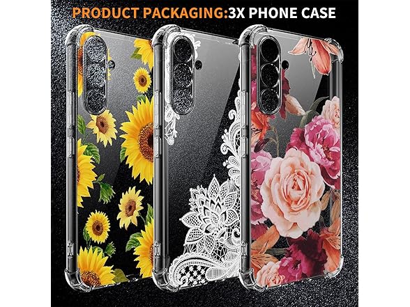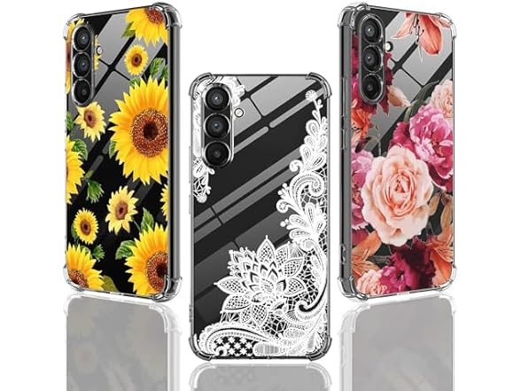YJROP (3-Pack) for Samsung Galaxy A55 5G Case, Soft Clear TPU [Scratch-Resistant] Drop Silicone Bumper Protection Shockproof Phone Case Cover for Samsung Galaxy A55 5G, Flower