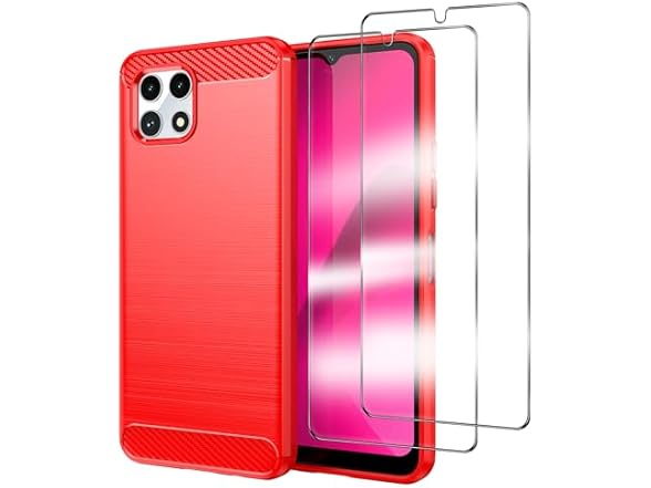 YJROP for T-Mobile Revvl 7 5G Case with Tempered Glass Screen Protector Flexible TPU Rubber Silicone Bumpers Anti-Scratch Shockproof Protective phone Case Cover for T-Mobile Revvl 7 5G - Red