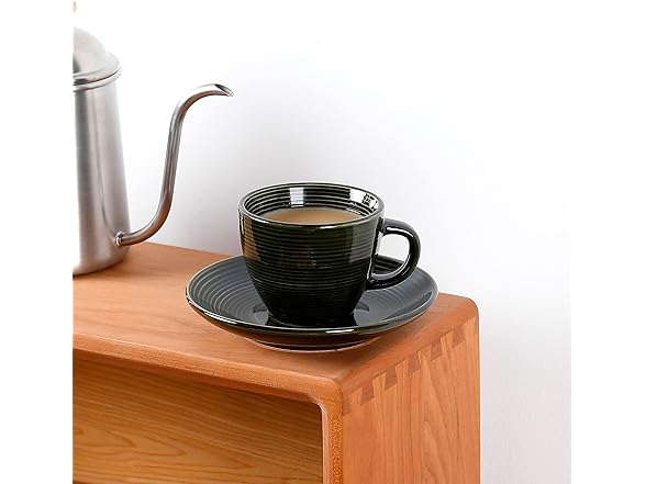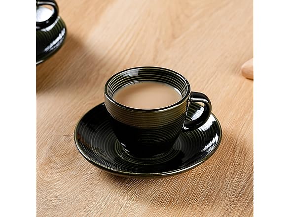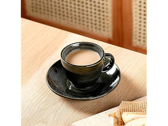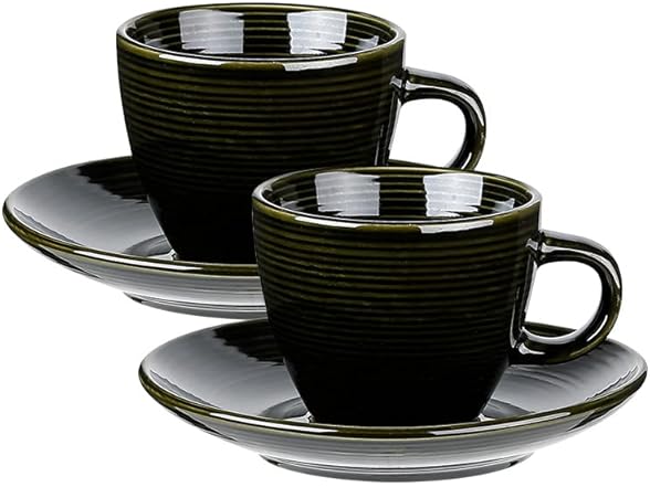 Ynsfree Espresso Mugs (Set of 2) - 6.5-Ounces Frothy Cappuccino Coffee Cups with Saucers Ceramic Stronger Classic Drinking Cups(Dark Green)