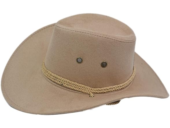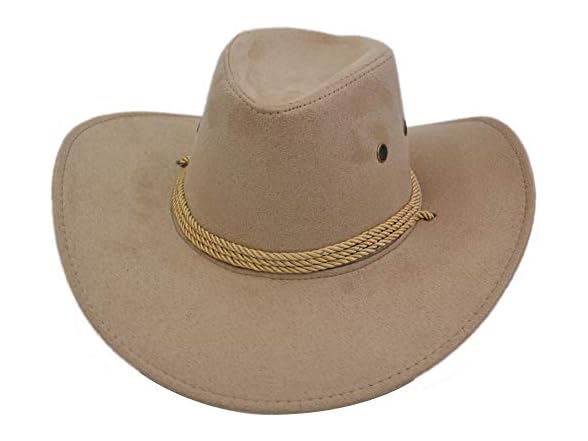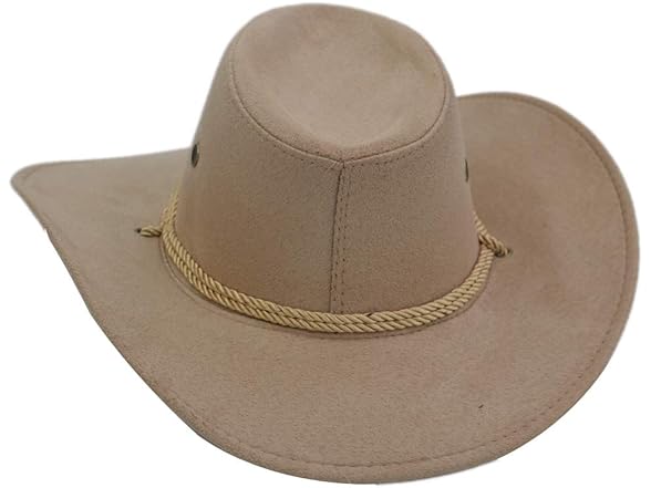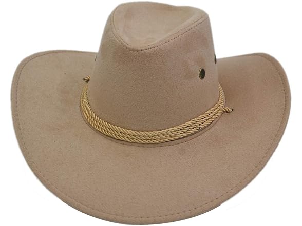 Yosang Adult Western Suede Hat Cowboy Outdoorsman Hat Travelling Summer Cap (Beige)
