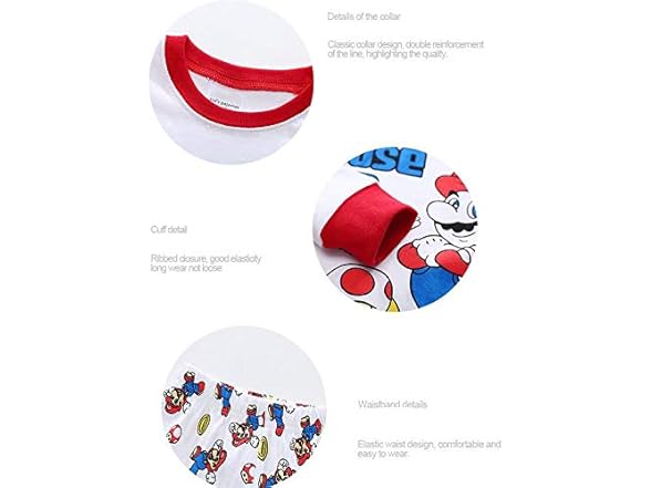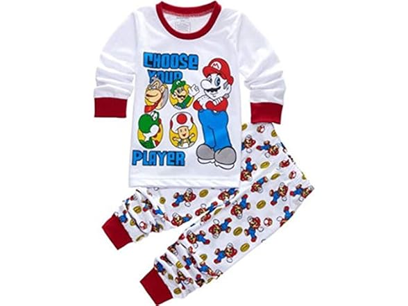 youenyou Toddler Boys Long Sleeve Mario Pajamas Sets Pjs Cotton Sleepwear Infant Kids (MW, 6T)