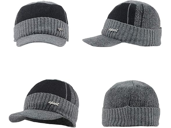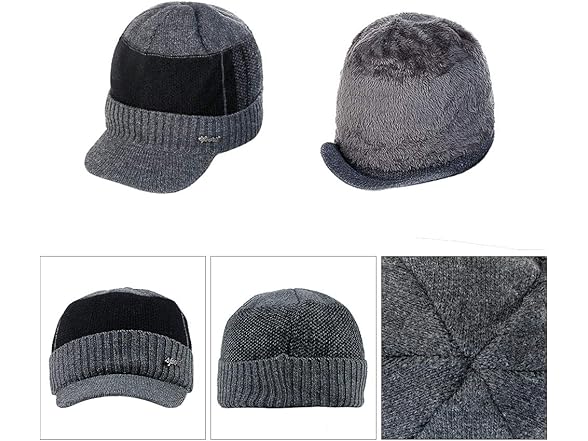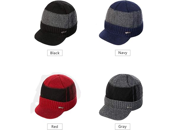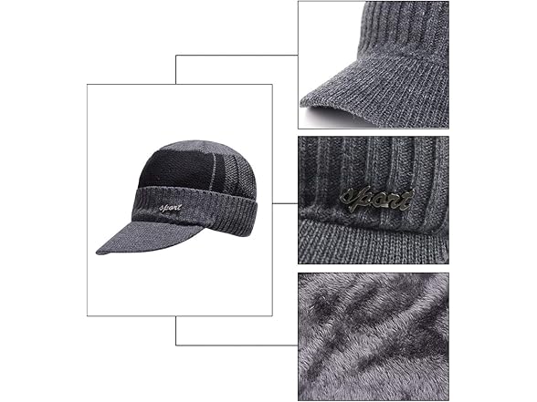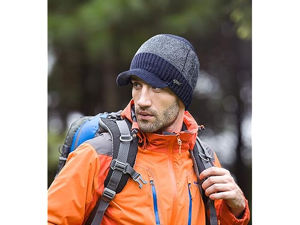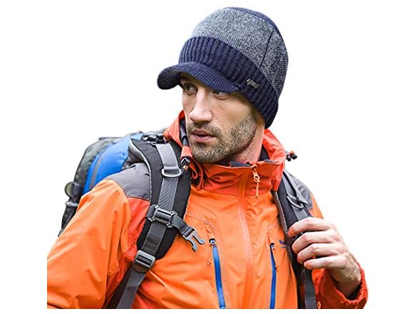 YOYEAH Men's Outdoor Newsboy Hat Winter Warm Thick Knit Beanie Cap Fleece Lined Skull Ski Cap with Visor Blue