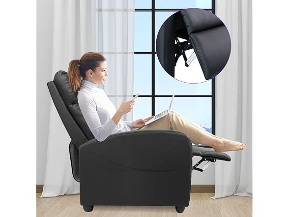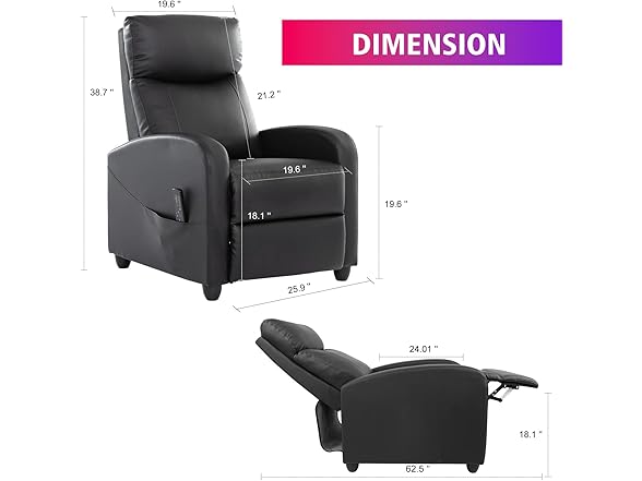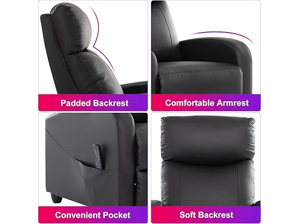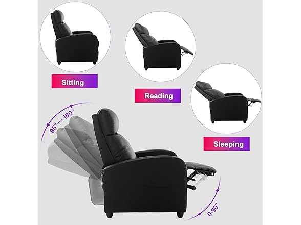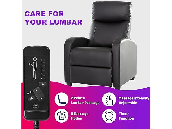 Zanzio Living Room Massage Recliner Chair, Modern High Back PU Leather Adjustable Heated Reclining Home Theater Single Sofa Chair with Padded Seat for Lounge Bedroom, Black (ZA-J5V)