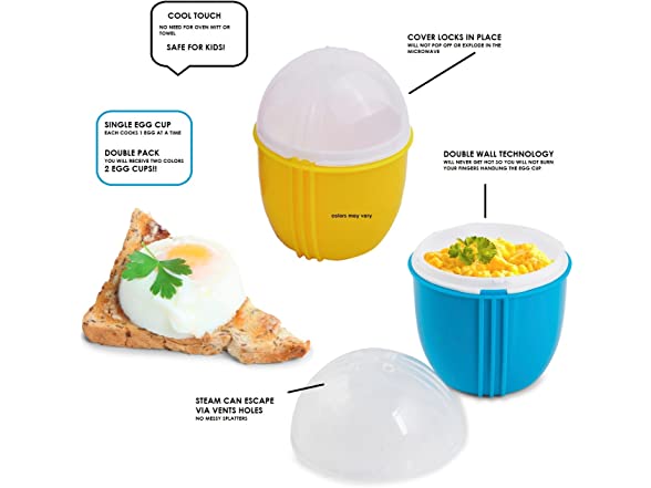 - Never burn you fingers! - kid friendly and seniors ready egg cups helps them prepare scramble eggs without touching a hot surface. Double insulated walls keep the cup cool on the outside.
