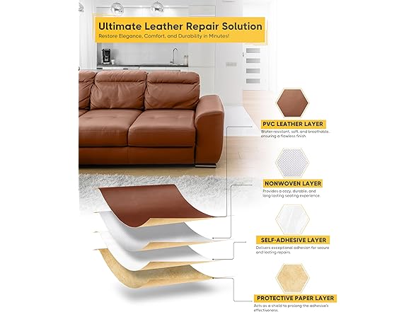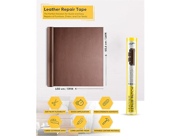 ZEFFFKA Leather Repair Patch 16 x 59 Inches Self-Adhesive PVC Faux Leather Tape Quick Application Easy to Use Large Coverage Area Durable Material for Furniture Car Seats Sofas Jackets and More
