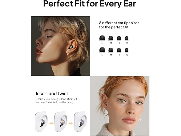 - 【Secure Fit in Multiple Sizes】: These sleep noise-canceling earplugs come with 4 pairs of precision-engineered earplug tips (XS-L) designed to fit a variety of ear canal shapes. The upgraded Noise Reduction Sponge and Acoustic Filter Mesh create a vacuum-like fit—simply choose your size, insert them securely, and experience up to 95% ambient noise reduction with ear plugs for noise reduction.