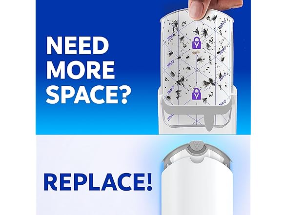 - Mess-Free Disposal - The fly trap refill features a strong adhesive backing that you never have to touch. Flying insects will be trapped here, and you can quickly pop the cartridge out to throw it away once it's full.