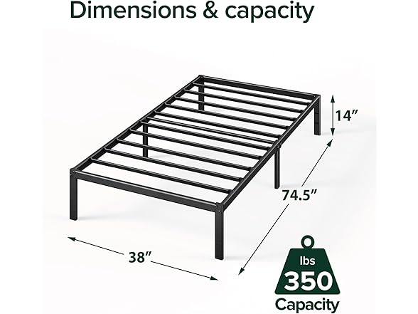 ZINUS 14 Inch Elias Metal Platform Bed Frame, Steel Support, No Box Spring Needed, Easy Assembly, Twin