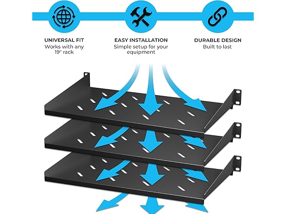 - QUALITY: Our rack shelf 1U is sturdy, firm, and holds heavy equipement with ease. It has been designed to prevent sagginess when installed per instructions, and comes with ALL the necessary hardware for a hassle free installation, along with an easy to follow user manual.
