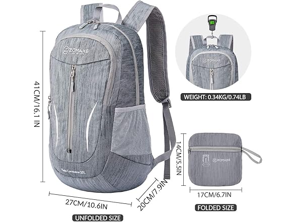 - Portability: Our packable lightweight backpack weight is 340g,light and portable,which is a good helper for camping.When you do not use the foldable backpack,fold it into a compact bag into a small handbag (size:17×14×5cm),does not take up space,making the camping easier and more happy