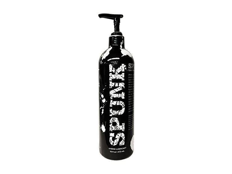 Spunk is a pretty good hybrid, but not the best. I've ordered this a couple of times and, like many others, I was initially very impressed. It has a fairly slippery feel, a good consistency, and creates no mess. The color of it...is true to the name "Spunk". It is also safe for toys. The downside is that it dries up very quickly, like many water-based lubes, so you have to use a lot of it. It becomes somewhat sticky after awhile. For sensitive people, it also creates a burning sensation when used internally. The bottle is a pump-top and there is no top cap. This makes it very awkward for travel-- you either have to risk making a mess, or waste a bunch of it trying to screw the pump-top down. The bottle also says SPUNK in huge white letters, just as pictured, so keep that in mind if you're trying to be discreet.